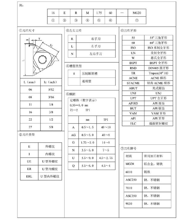 2)螺紋刀片編號規(guī)則