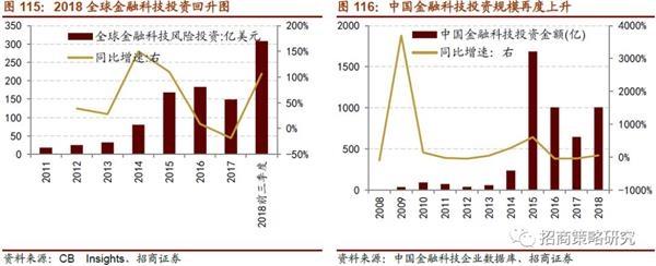 隨著監(jiān)管層政策規(guī)范政策不斷出臺,近幾年P(guān)2P、區(qū)塊鏈等過熱炒作已降溫,2017年投資冷卻期后,2018年起再度升溫。據(jù)麥肯錫報告,2018年前三季度全球金融科技風(fēng)險投資總額已經(jīng)達(dá)到308億美元,投資數(shù)額大幅增長。CB Insights數(shù)據(jù)顯示,2018年中國已成為全球最大的金融科技投資市場,投資總額達(dá)到255億美元,相當(dāng)于2017年全球投資總額。國內(nèi)中國金融科技企業(yè)數(shù)據(jù)庫同樣顯示國內(nèi)金融科技投資金額自2016年下降后,在2018年出現(xiàn)回升,投資金額較去年增長55%。