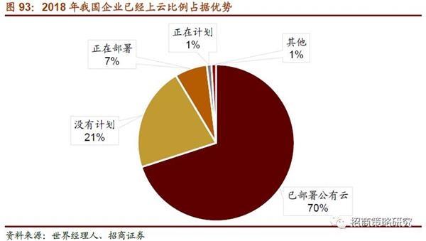 據(jù)世界經(jīng)理人發(fā)布的《2018年中國企業(yè)云計算應(yīng)用現(xiàn)狀及需求調(diào)研報告》,參與調(diào)研的2327家企業(yè)中,有70.3%已經(jīng)部署云,6.7%家企業(yè)正在部署,0.96%家企業(yè)準(zhǔn)備部署。