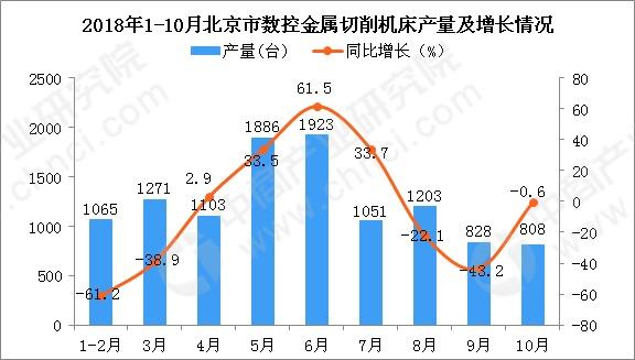 2018年1-10月北京市數(shù)控金屬切削機床產(chǎn)量及增長情況